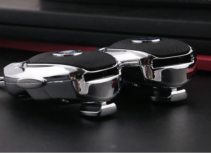 Adaptorul este confectionat din aliaj metalic - cromat, piele naturala si inscriptionata cu sigla JEEP.