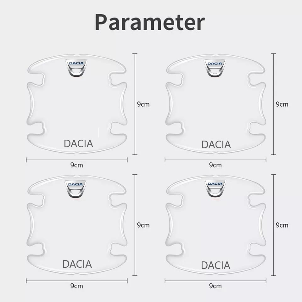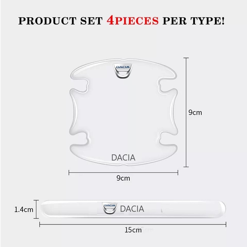 Set 8 Stikere - Autocolante Transparente pentru Protectie Zgarieturi Manere Usa - DACIA