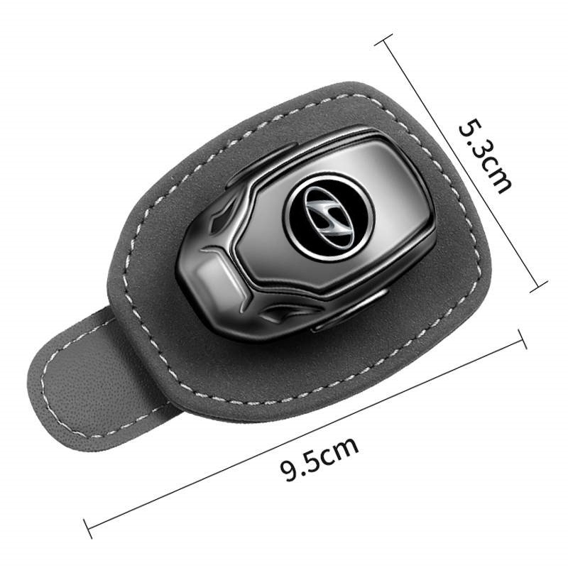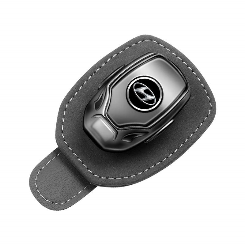 Suportul este realizat din piele alcantara de culoare neagra, rosie, crem sau gri, partea de prindere a ochelarilor de soare, carduri, etc. este realizata din metal cromat personalizat cu logo HYUNDAI