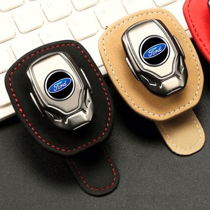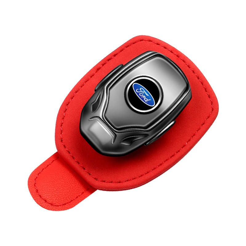 Suportul este realizat din piele alcantara de culoare neagra, rosie, crem sau gri, partea de prindere a ochelarilor de soare, carduri, etc. este realizata din metal cromat personalizat cu logo FORD